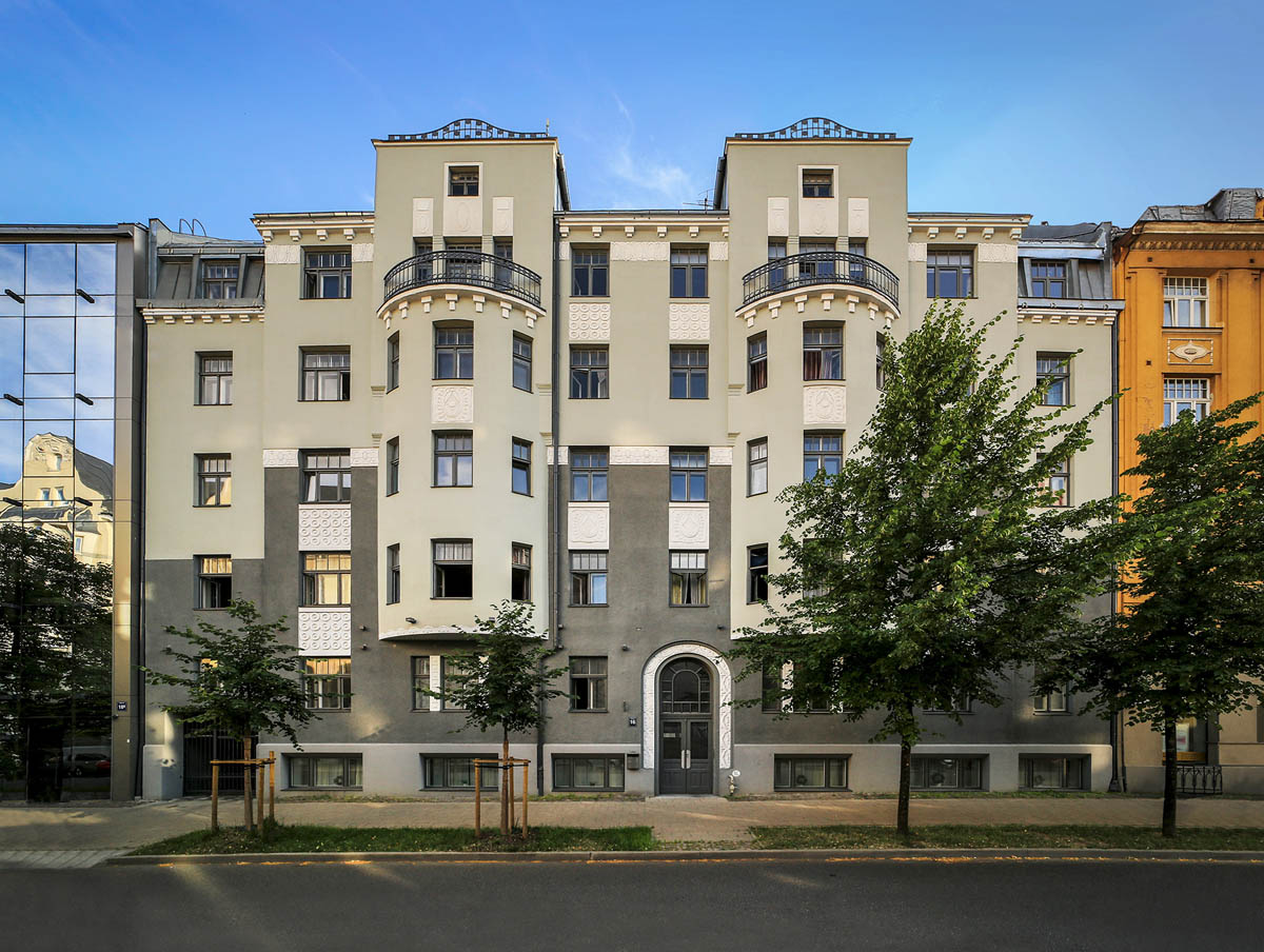 1910. gadā pēc arhitekta O. Bāra projekta celtais īres nams ir viens no Rīgas jūgendstila arhitektūras pieminekļiem, kas atrodas Rīgas vēsturiskajā centrā. Līdz ēkas atjaunošanai 2017. gadā tās fasāžu apdare bija ievērojami nolietojusies, bet ēkas cokolstāvā bija aizmūrētas vairākas autentiskās logu un durvju ailas. Layout17 arhitekta Daiņa Broka vadībā ēkai Stabu ielā 16 tika izstrādāts fasādes vienkāršotas atjaunošanas projekts un cokola stāva vienkāršotas atjaunošanas projekts. Projektu īstenošanas rezultātā ēka no jauna ieguva savu vēsturisko dekorativitāti ar jaunu fasāžu krāsojumu, tika atjaunotas autentiskās logu un durvju ailas, pietuvinot to aizpildījumu iespējami tuvu vēsturiskajiem analogiem, bet ēkas cokola stāvs ieguva jaunu plānojumu viesnīcas telpu grupu izveidei.